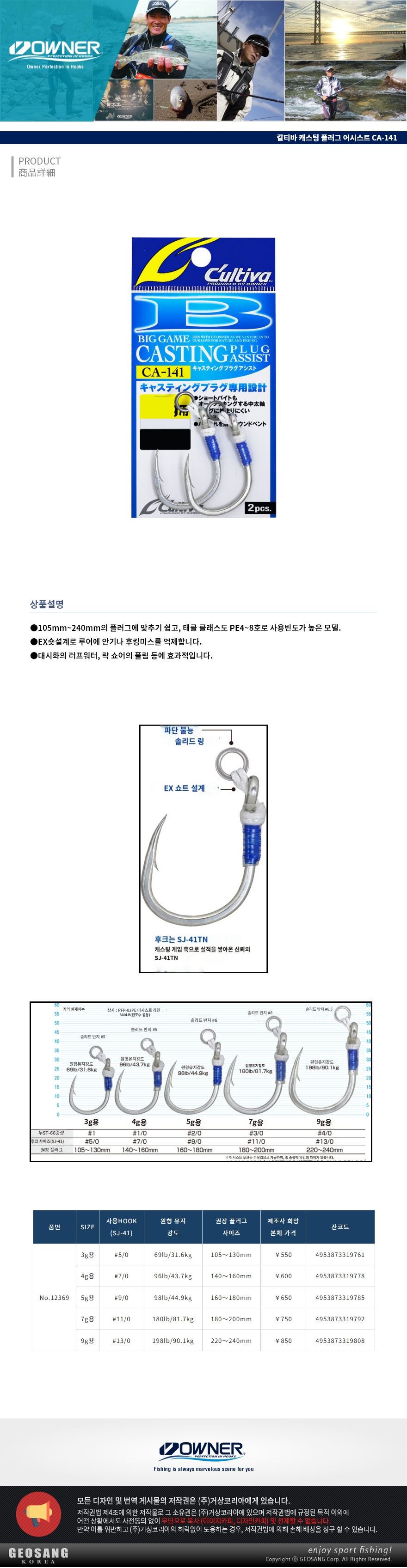 형제낚시 낚시용품의 모든것 오너 칼티바 캐스팅 플러그 어시스트 CA-141