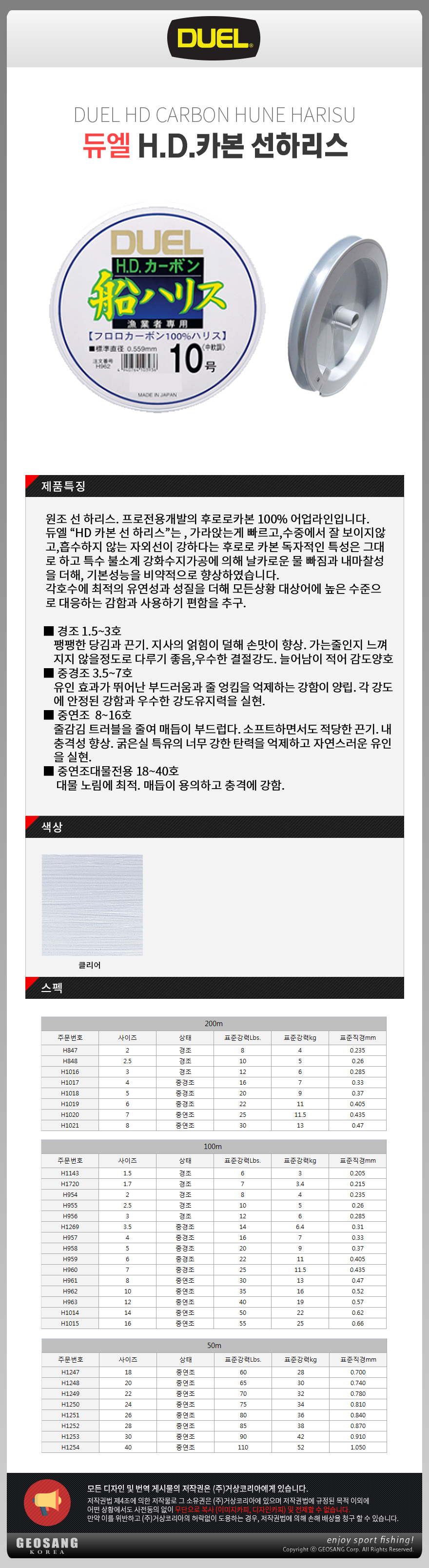 형제낚시 낚시용품의 모든것 듀엘 듀엘 HD카본 선하리스 100m/(선상목줄) 100m