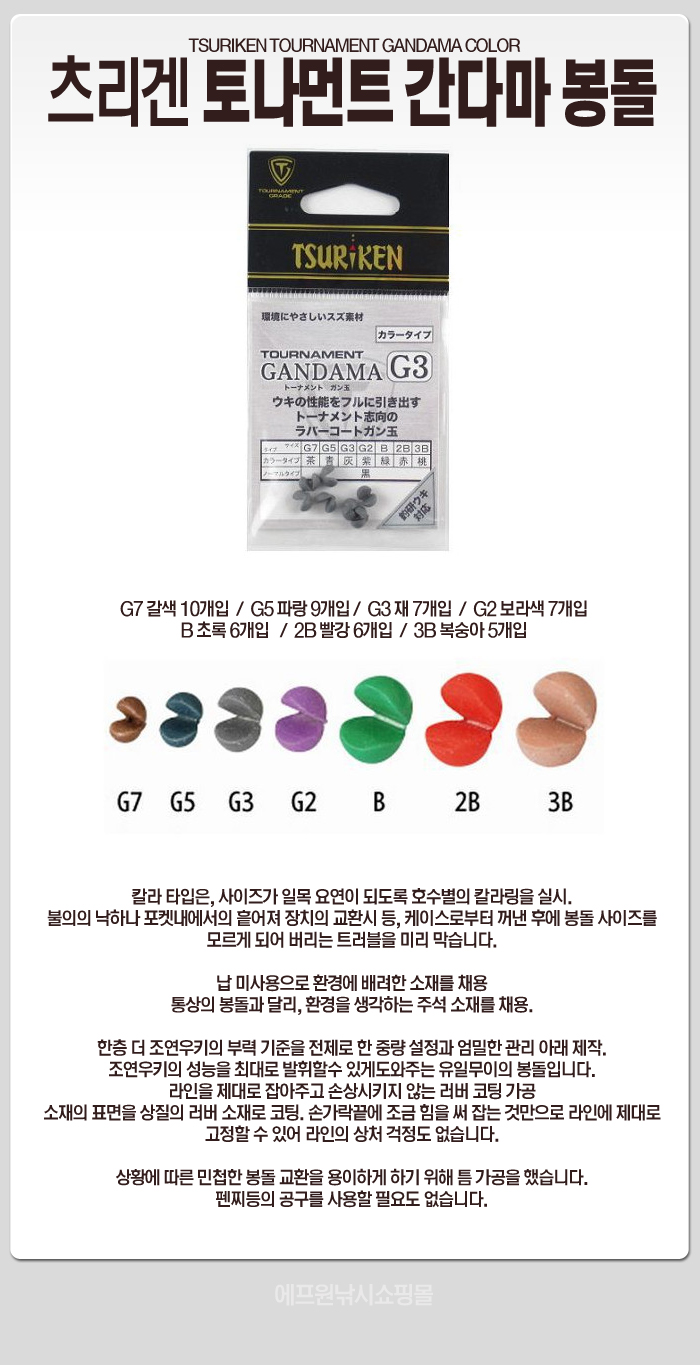 형제낚시 낚시용품의 모든것 쯔리겐 토너먼트 간다마 봉돌 컬러/ 러버간다마