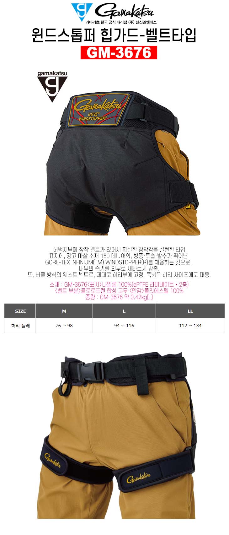 형제낚시 낚시용품의 모든것 가마가츠코리아 GM-3676 윈드스톱퍼 힙가드-벨트타입