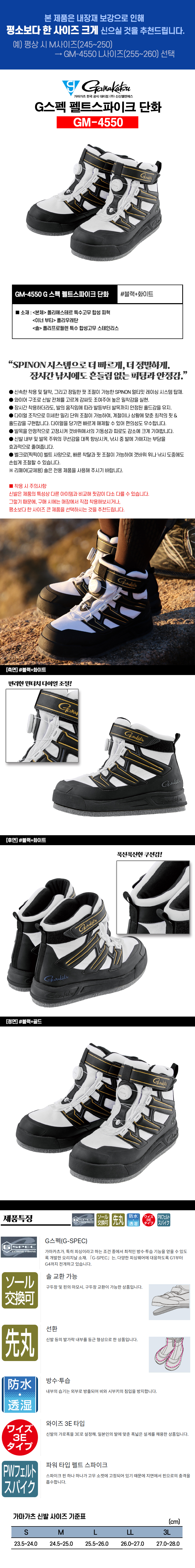 형제낚시 낚시용품의 모든것 가마가츠코리아 GM-4550 G스펙 펠트스파이크 단화 [블랙X화이트]