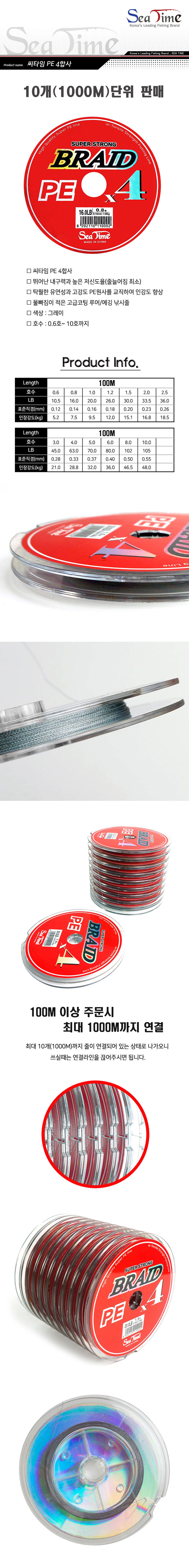 형제낚시 낚시용품의 모든것 씨타임 [S0682]씨타임 PE 4합사 100M 루어 낚시줄 롤합사