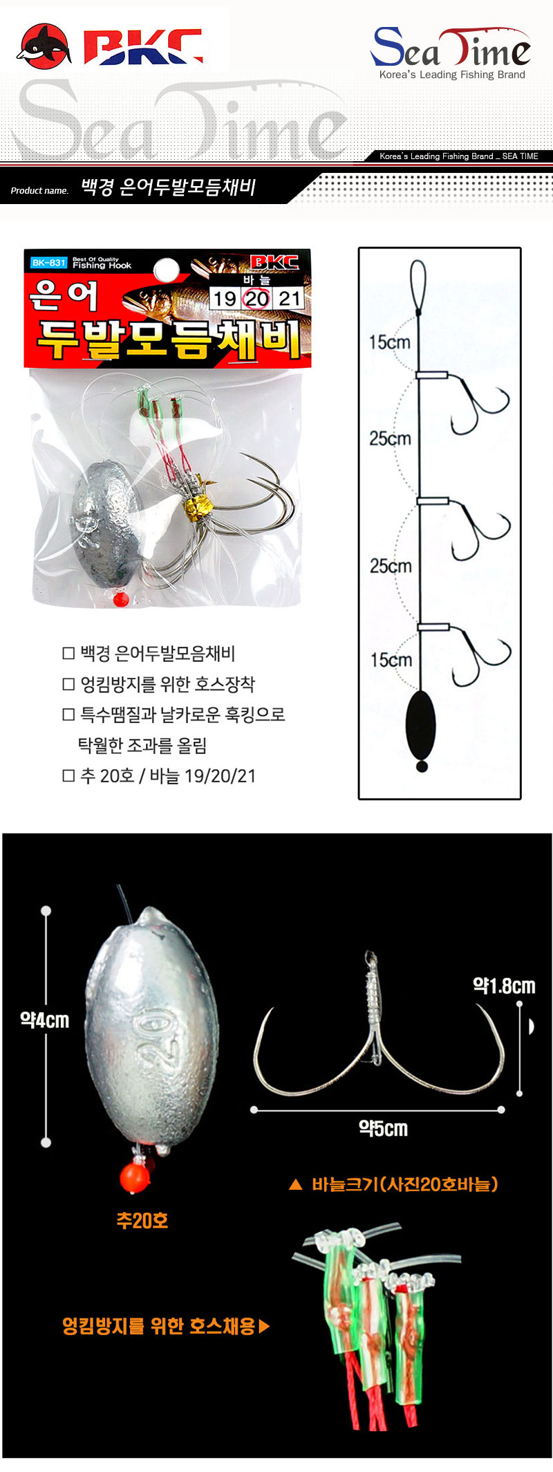 형제낚시 낚시용품의 모든것 씨타임 [S0098]BK831 백경 은어 두발모듬채비