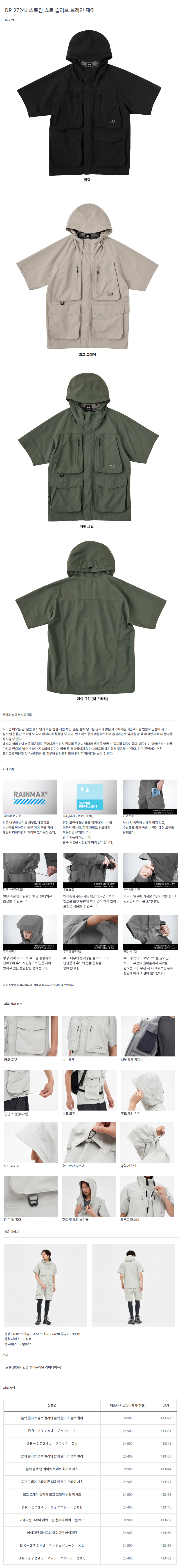 형제낚시 낚시용품의 모든것 다이와 DR-2724J 슬리브 브레인 재킷 다이와점퍼 자켓 낚시복