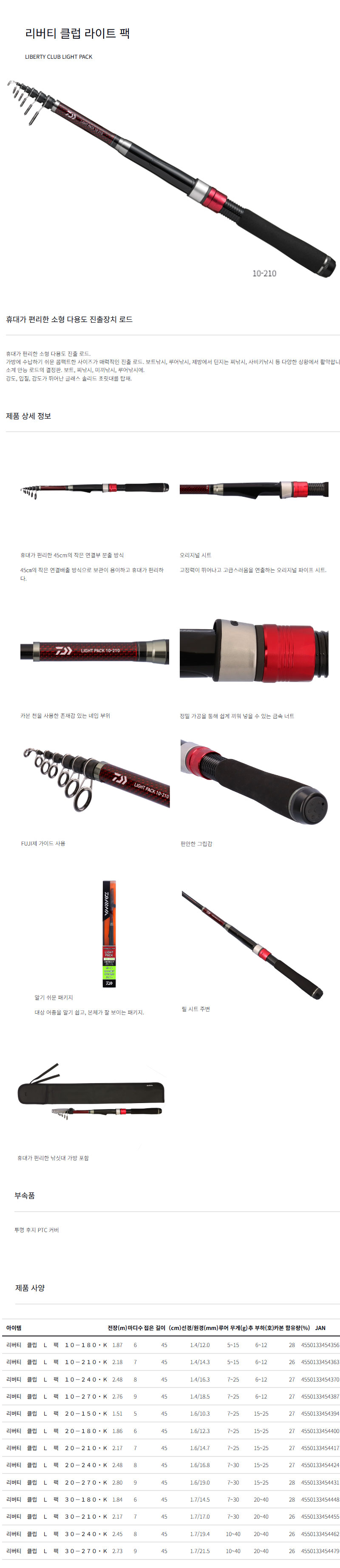 형제낚시 낚시용품의 모든것 다이와 리버티 클럽 라이트 팩 다이와 휴대용 원투낚시대 원투대