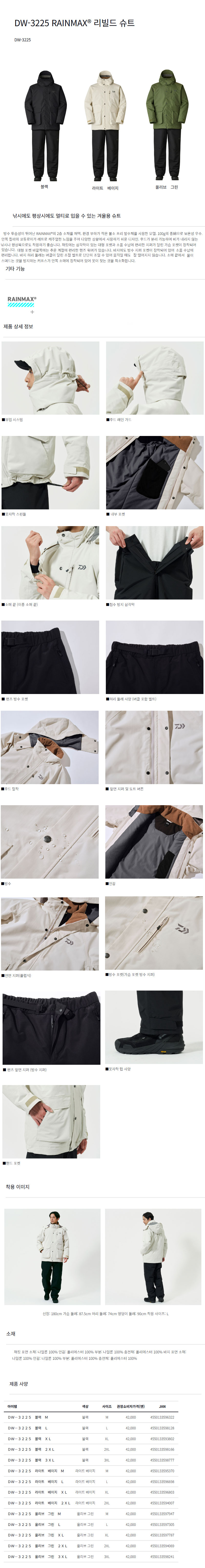 형제낚시 낚시용품의 모든것 다이와 DW-3225 다이와 낚시복 레인맥스 리빌드 슈트 비옷