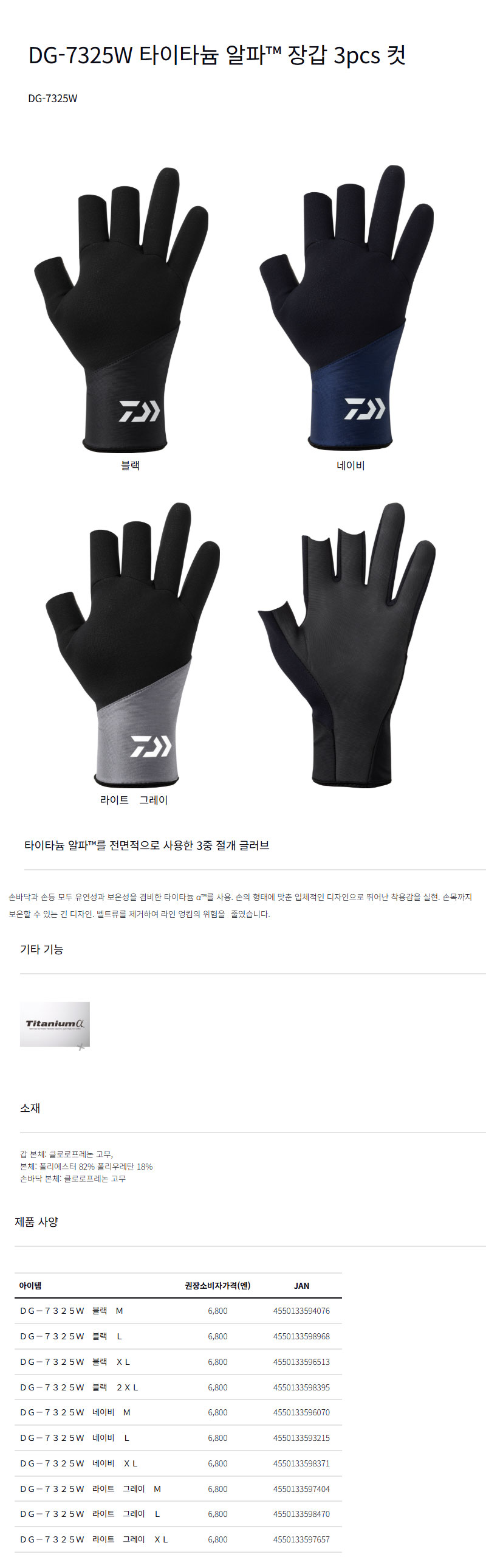 DG-7325W 다이와 낚시장갑 3컷 타이타늄 알파