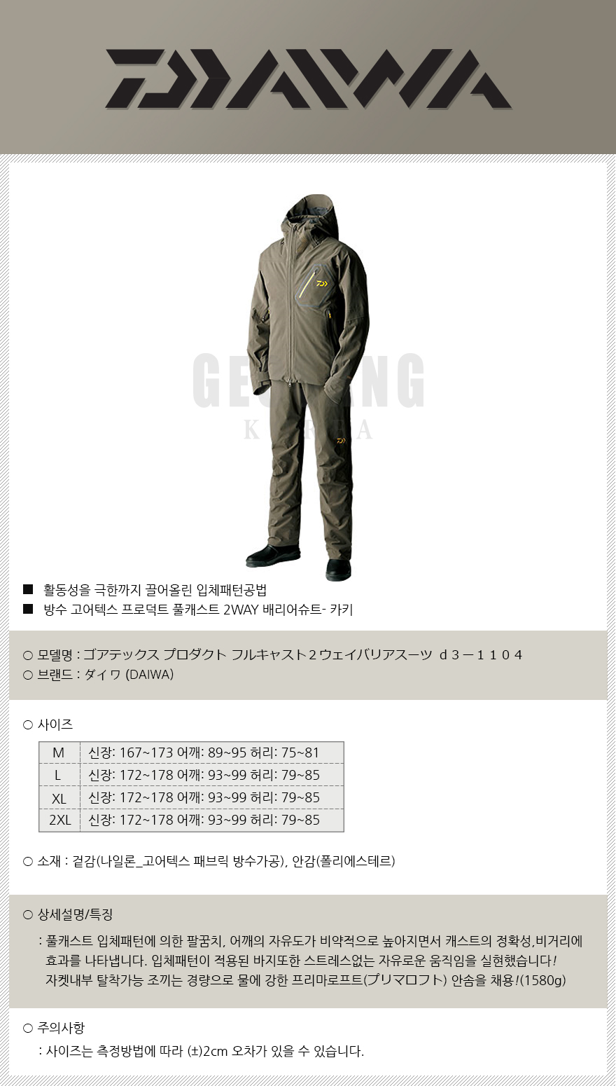 다이와 낚시복 D3-1104/고어텍스낚시복/방한고어