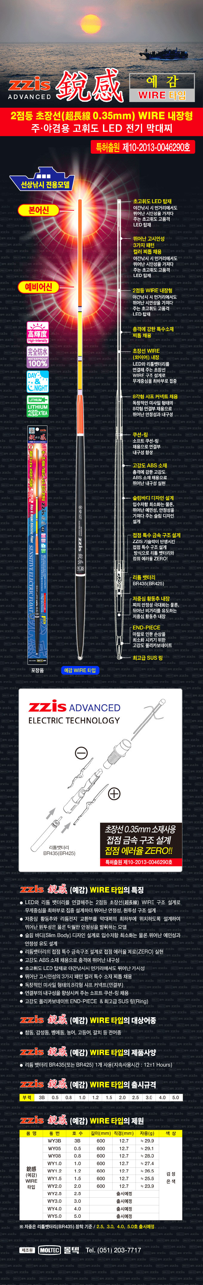 형제낚시 낚시용품의 모든것 몰텍 ZZIS 예감막대찌 2점등/전자찌 와이드타입
