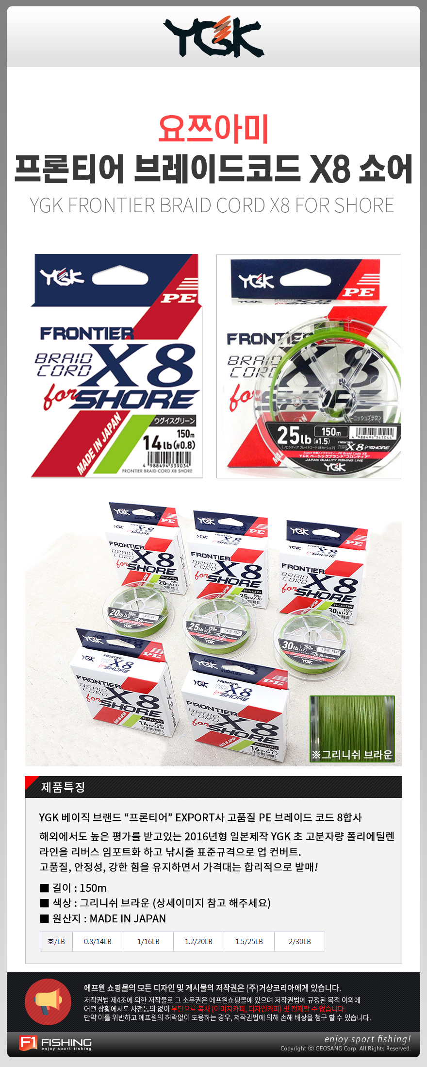 형제낚시 낚시용품의 모든것 요쯔아미 지소울 8 합사 PE 라인 프런티어 브레이드 코드 X8 150m
