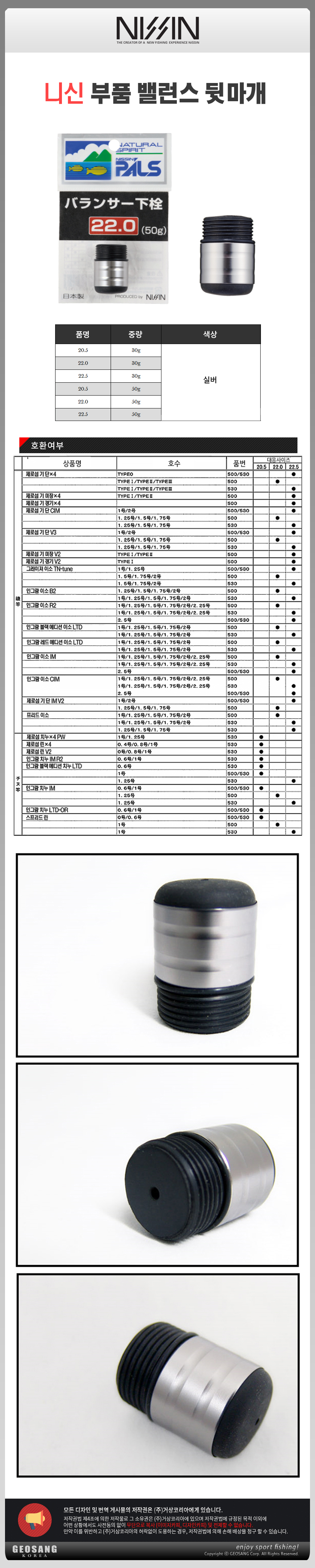 니신 밸런스 뒷마개 PALS 30g/ 니신 낚싯대전용 밸런스 뒷마개