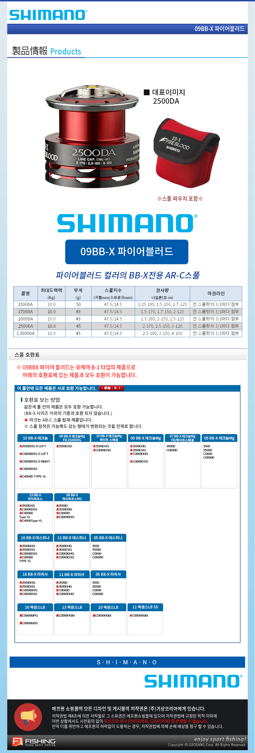 형제낚시 낚시용품의 모든것 시마노 시마노 유메야 BB-X 파이어블러드 2500DA 보조스풀