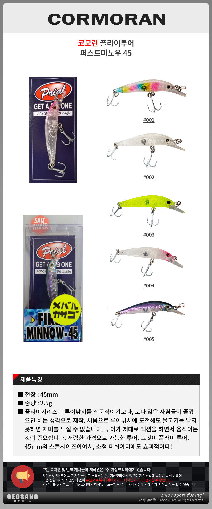 형제낚시 낚시용품의 모든것 코모란 플라이루어 퍼스트미노우/미노우낚시 솔트워터