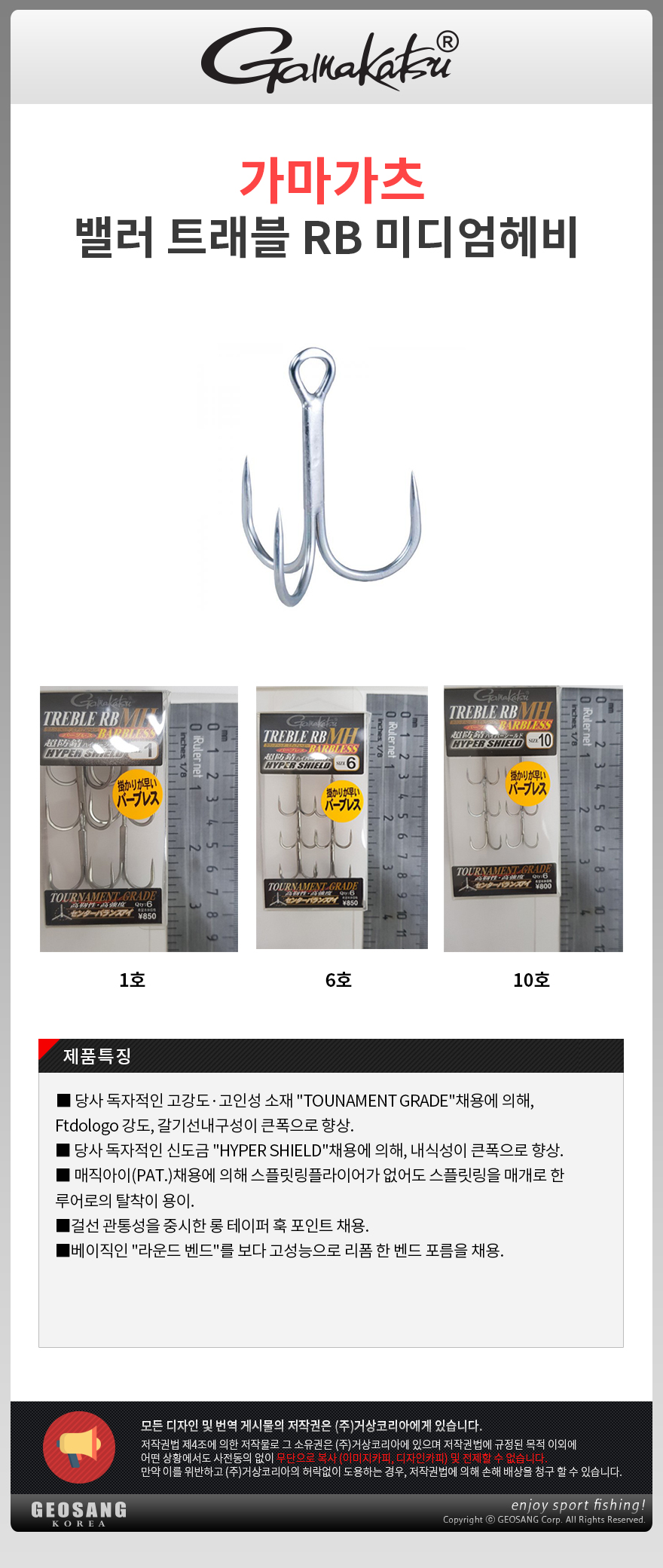 형제낚시 낚시용품의 모든것 특가가마가츠 트레블RB 미디엄헤비