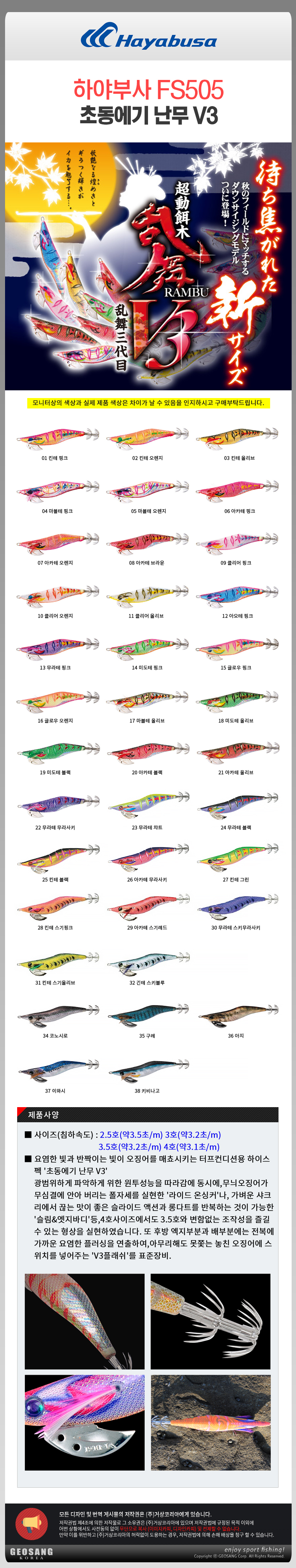 형제낚시 낚시용품의 모든것 하야부사 FS505 초동에기 난무 V3 3호/오징어루어 에기루어