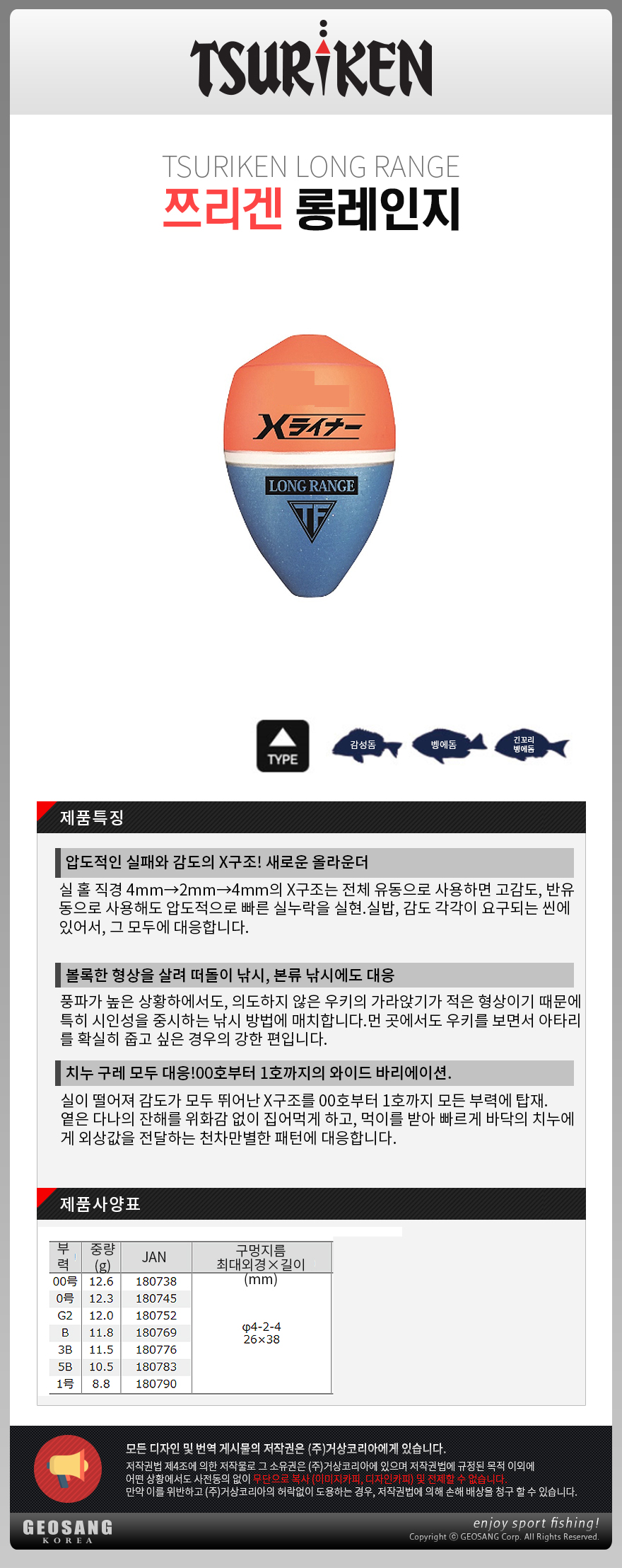 형제낚시 낚시용품의 모든것 쯔리겐 X라이너 롱레인지 스칼렛/바다구멍찌 낚시찌