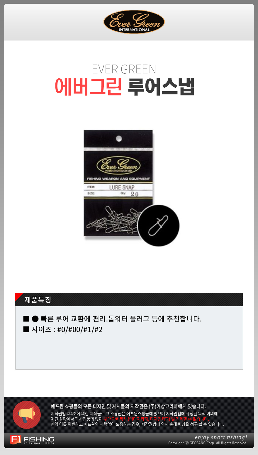 형제낚시 낚시용품의 모든것 에버그린 에버그린 루어스냅 낚시채비 바다소품 선상 루어 지깅