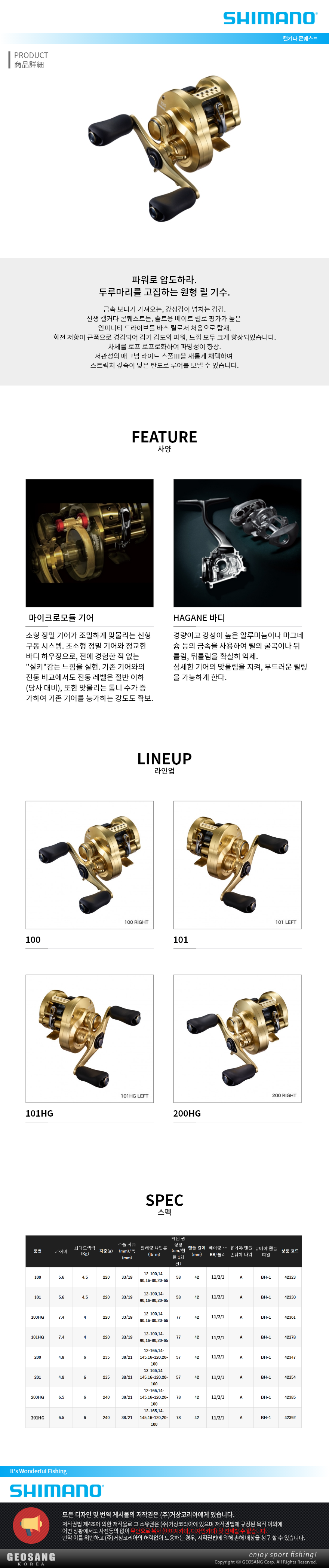 형제낚시 낚시용품의 모든것 시마노 시마노 21캘커타 CT콘퀘스트 지깅릴 선상루어낚시