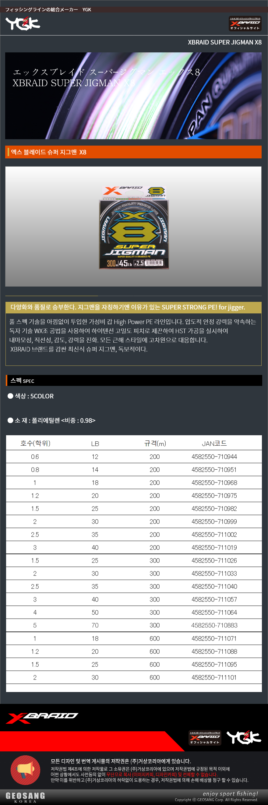 형제낚시 낚시용품의 모든것 요쯔아미 요쯔아미 엑스브레이드 슈퍼지그맨 8합사 600M 5색