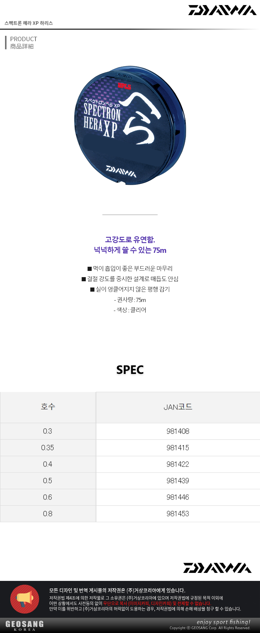 형제낚시 낚시용품의 모든것 1다이와 스펙트론 XP 헤라 붕어 목줄 75M