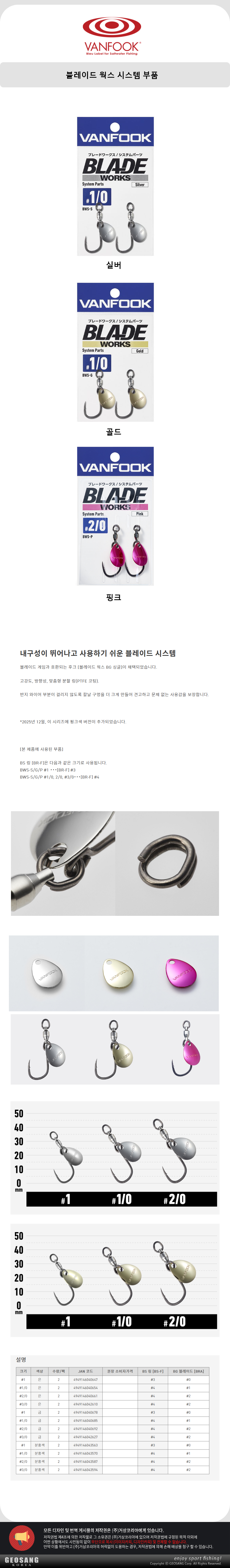 형제낚시 낚시용품의 모든것 밴푹 블레이드 웍스 시스템 부품 BWS-S / BWS-G / BWS-P