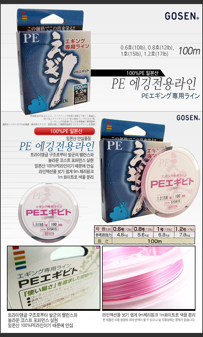 형제낚시 낚시용품의 모든것 고센 PE 에기비토 SP/합사 낚시줄 100m/150m바다원줄