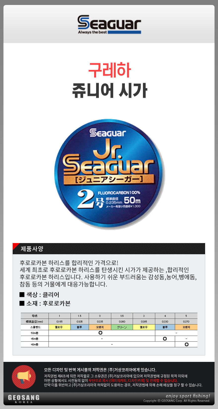 형제낚시 낚시용품의 모든것 구레하 시가 주니어/시가쥬니어 카본목줄카본쇼크리더